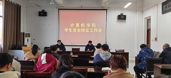 为贯彻落实学校平安建设和安全稳定工作会议精神,做好做实学院安全稳定工作,12月6日,计算机学院在文友楼424会议室召开学生安全稳定工作会,计算机学院党委书记袁宜如、副书记王玉伟、全体辅导员及班主任参会,会议由王玉伟主持。