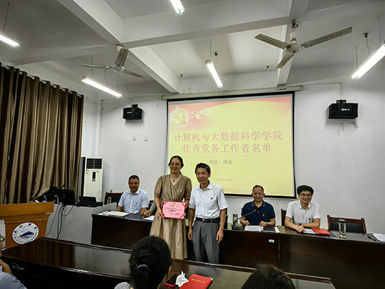 邹国辉书记代表学院向受到表彰的集体和个人表示热烈祝贺,向广大党员和师生员工致以亲切慰问。他指出,作为教师尤其是党员教师,要提高政治站位,在教育教学、管理服务等过程中发挥先锋模范作用,并向全体教职工尤其党员教师提出三点希望:一是要做到有思想号召力,树立崇高的职业理想信念,做好学生人生道路的引路人;二是要做到有学习力,树立终身学习理念,不断汲取新知识,努力提升自身学识魅力;三是要做到有行动力,在自我修养的不断提升中实现道德追求,用自己的道德情操去感染学生、引导学生。