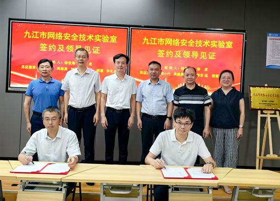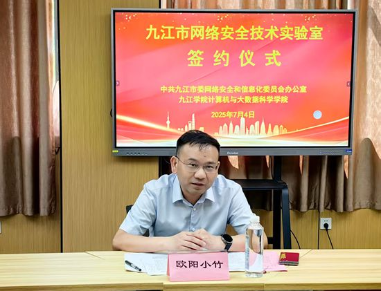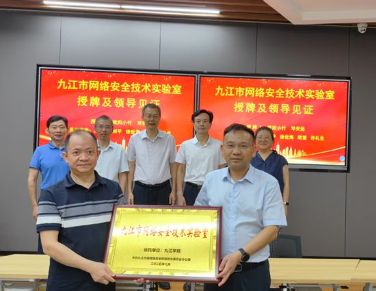 7月4日,pg国际电子网站pg国际电子网站与九江市委网络安全和信息化委员会办公室(市委网信办)共建“九江市网络安全技术实验室”签约揭牌仪式在pg国际电子网站电子实验楼602隆重举行,副校长吴维勇出席仪式并致辞。市委宣传部副部长、市委网信办主任欧阳小竹,市委网信办副主任徐世海参加仪式活动。pg国际电子网站党委委员、宣传部部长刘平,实验中心主任许礼生,信息技术中心主任胡慧共同见证“九江市网络安全技术实验室”签约揭牌。仪式活动由pg国际电子网站pg国际电子网站院长邓安远主持。