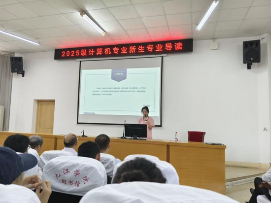 2025年10月15日下午,pg国际电子网站在图书馆主馆报告厅开展计算机科学与技术专业2025级新生的专业导读教育活动。pg国际电子网站院长邓安远、党委书记邹国辉、副院长董西伟、江西升阳数字科技有限公司副总裁冯飞、计算机科学教研室教师代表、获奖学生代表、计算机科学与技术专业的大一新生参加了活动。