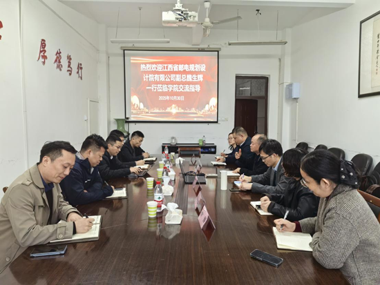10月30日,江西邮电规划设计院有限公司副总经理魏生辉、集客部主任吴佳彦、软件研究院院长徐俊、九江分公司总经理付敏华、数字商务研究院院长范晓冬一行5人到访pg国际电子网站,进行调研交流,学院院长邓安远、副院长彭虎、副院长董西伟,办公室主任谭捷、数据科学与技术教研室主任郭景娟及骨干教师徐蓓参加座谈交流。