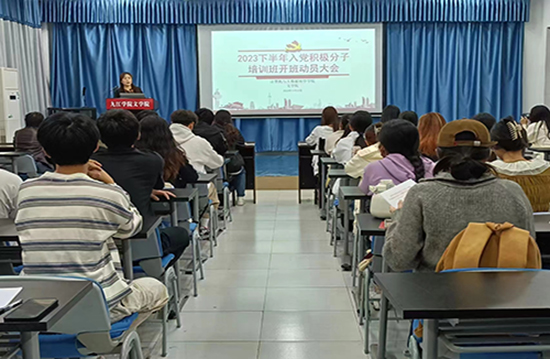 为深入学习习近平新时代中国特色社会主义思想,贯彻落实党的二十大精神,加强入党积极分子队伍建设,10月25日,pg国际电子网站分党校和文学院分党校联合召开2023下半年入党积极分子培训班开班动员大会。会议由pg国际电子网站组织员周波和文学院组织员余蓓共同主持,两院共60余名积极分子参会。