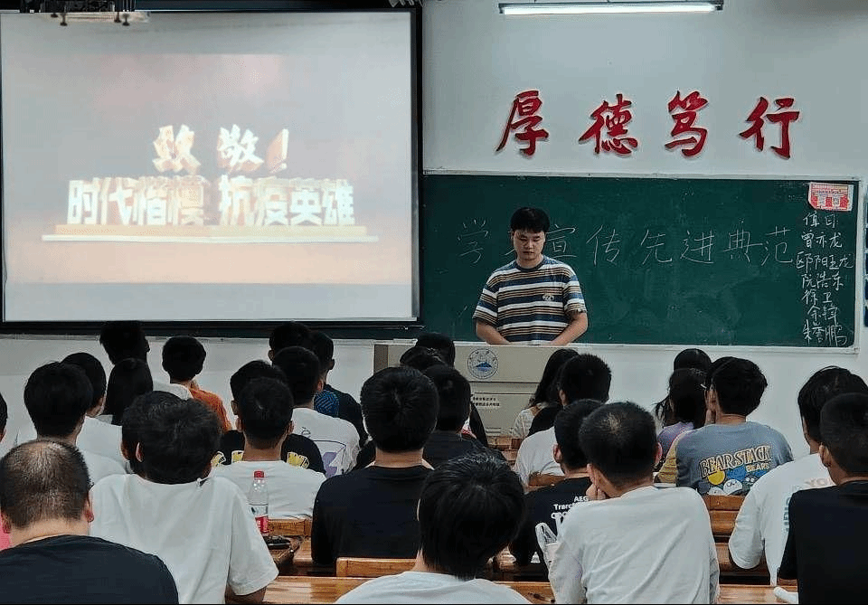 活动中,全体同学们观看了时代楷模先进事迹宣传片。视频依次从不同身份、不同视角、不同侧面,以感人事例和质朴语言,饱含深情地还原了一场场惊心动魄的战斗场景,讲述了一个个爱民为民的时代楷模的感人故事,引发了同学们的强烈共鸣和热烈反响。