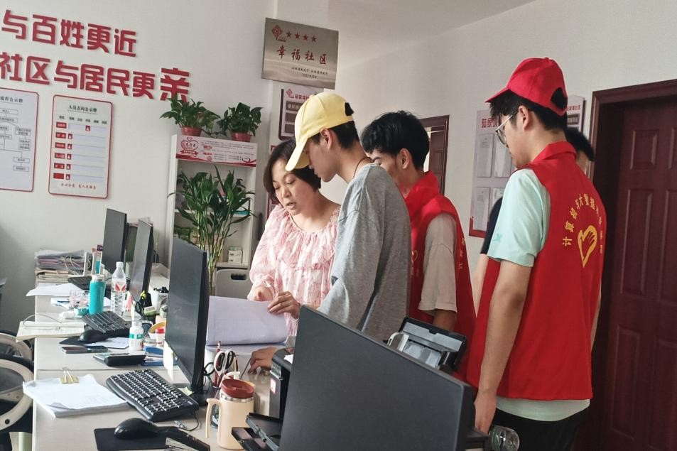 随后,入党积极分子深入社区基层为社区服务。听从社区分配,两人一组按照顺序分别上门拜访住户,对住户进行社区满意度调查,完成调查表。最后,入党积极分子对社区开展“垃圾大作战”,分别清扫不同片区,并对垃圾进行分类处理。