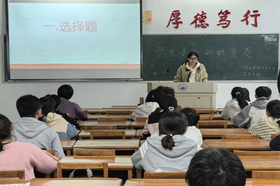 比赛一触即发,同学们全神贯注地紧盯屏幕,不停歇的笔尖展现出的是同学们扎实的知识储备。真正的沸腾点出现在争分夺秒的抢答环节——不仅是脑力的比拼,更是反应的考验。同学们迎难而上,相继举手抢答,自信地解答由主持人提出的问题,用智慧化解一道道校园生活情景难题,无不体现出了同学们对校园规则的重视。这不仅仅是一场比赛,更是一场同学们共同参与的青春盛会。