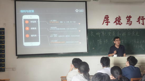 宣讲会开始,胡经理为同学们介绍了亚信科技有限公司的公司规模和业务范围、主要产品和服务,然后详细讲解了此次宣讲招聘实习生的目的和要求,以及公司给与的待遇与提升机会,并与同学们积极互动,耐心解答了同学们提出的关于职业发展、岗位要求等问题,现场气氛热烈,大部分同学都积极响应,投递简历。